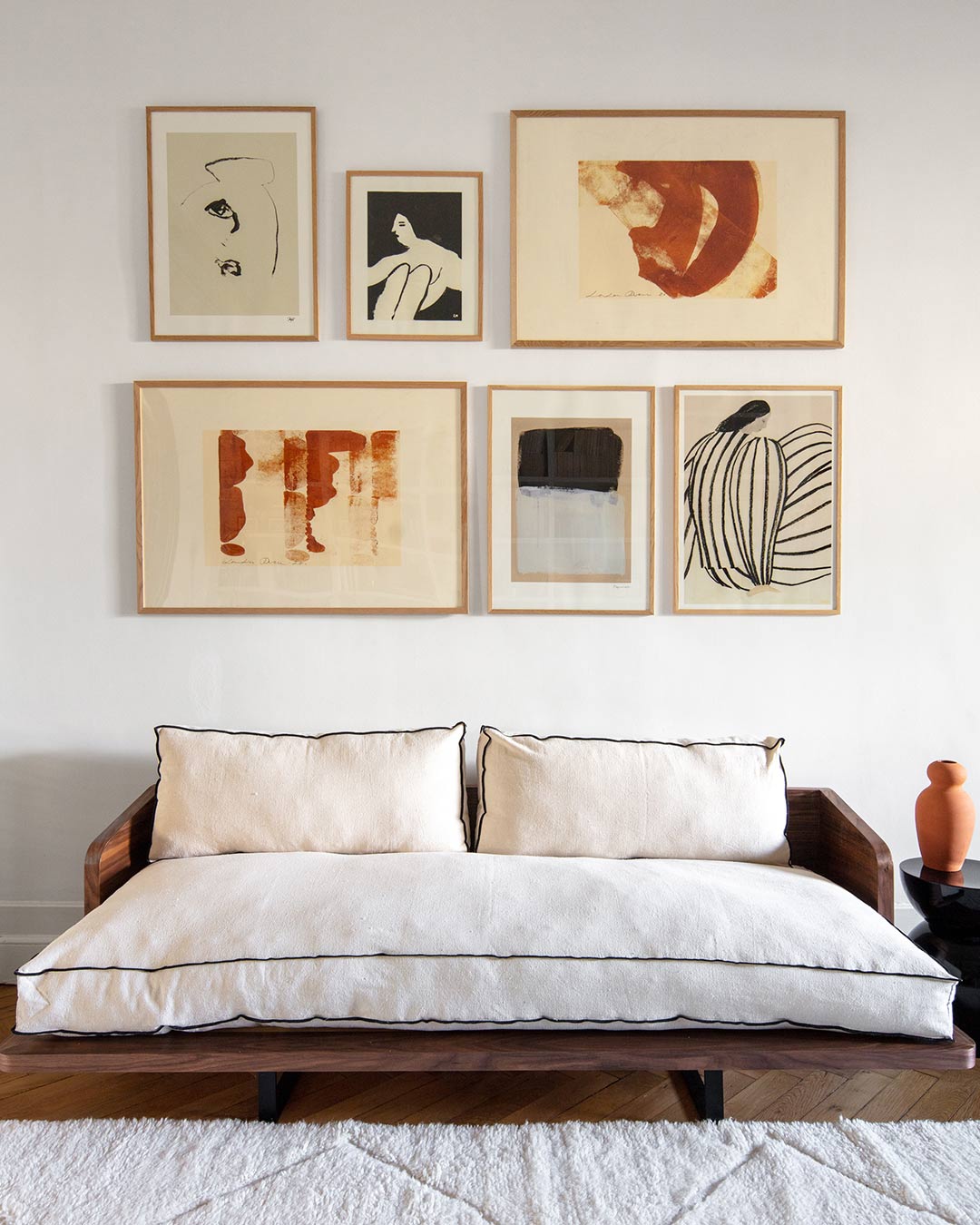 Un canapé en bois et coton au design épuré
