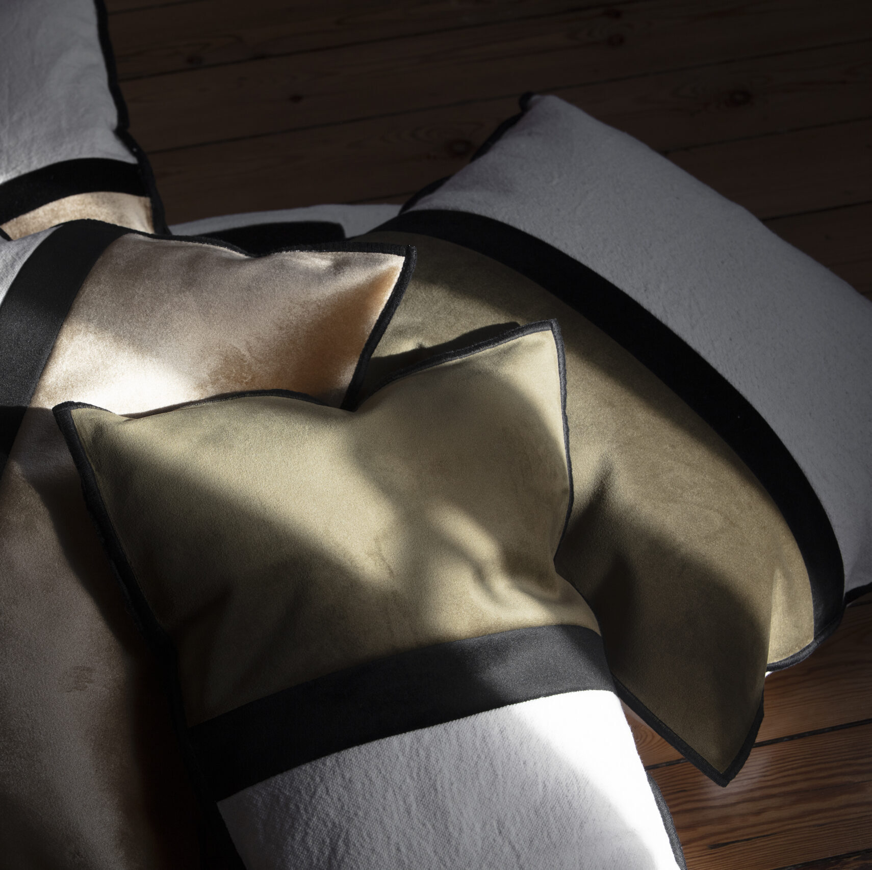 La gamme de rideaux et coussins Bolsena signe l’un des premiers succès Éditions Vétiver. Cette ligne a été pensée autour de la Kéria, un tissu typique du Maroc, fait de chutes de coton blanc recyclées, et du velours, intemporel et chaleureux.