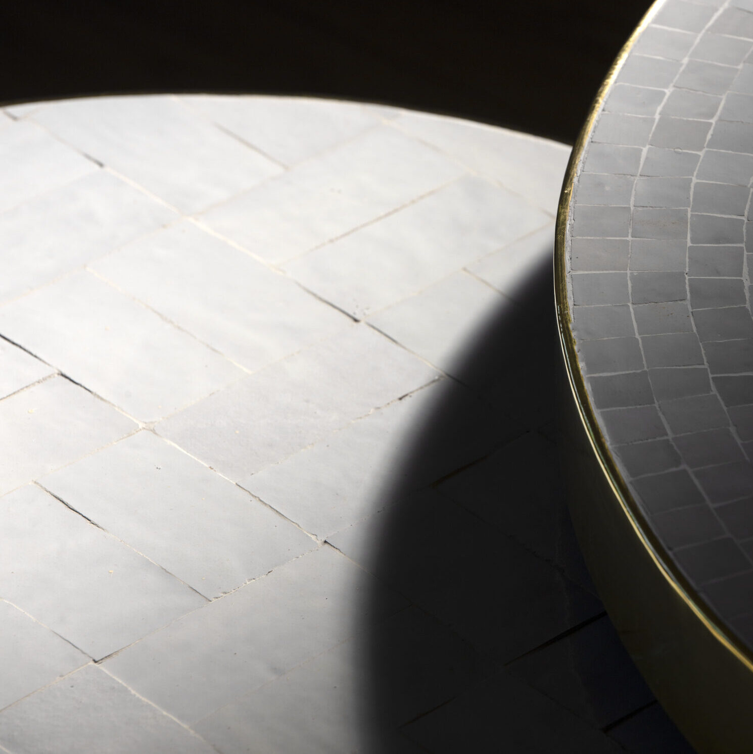 Intemporel est un des premiers mots qui nous vient à l’esprit lorsqu’il s’agit de parler du zellige. Utilisés depuis des siècles au Maroc et fabriqués à base d’argile, ils se déclinent ici sur notre collection de table Opus. On aime la légèreté du pied façonné à la main dans nos ateliers, on adore la facilité qu’a cette collection à trouver sa place dans tous les styles d’intérieurs.